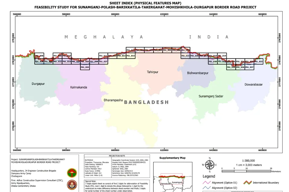 The proposed feasibility study project for the Sunamganj-Polash-Barikkatila-Takergahat-Mohishkhola-Durgapur border road in the Northern