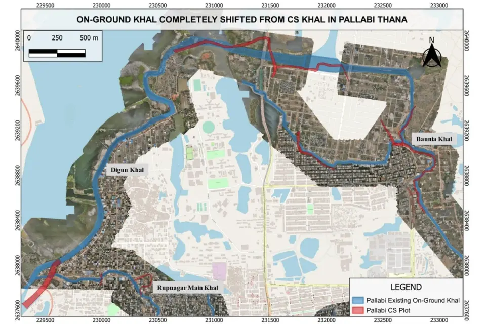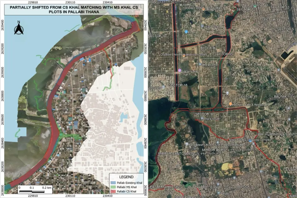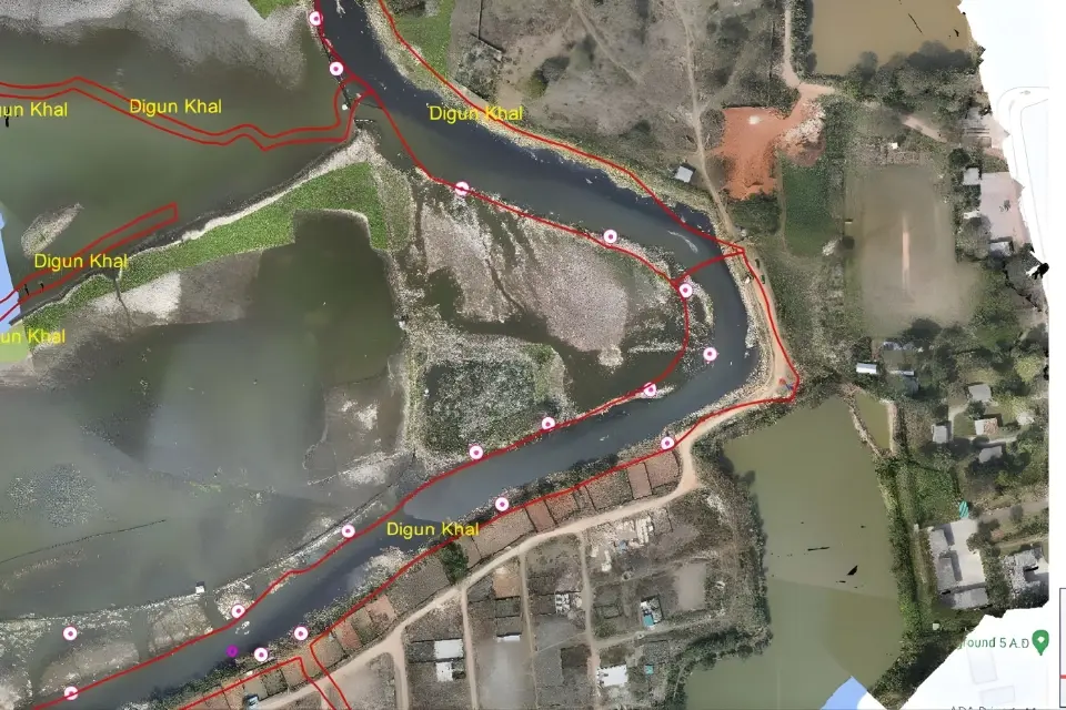 - Digitized legal Khal boundary and one retention pond boundary GIS database according to CS, RS and MS mouza map and Dhaka WASA LA case.